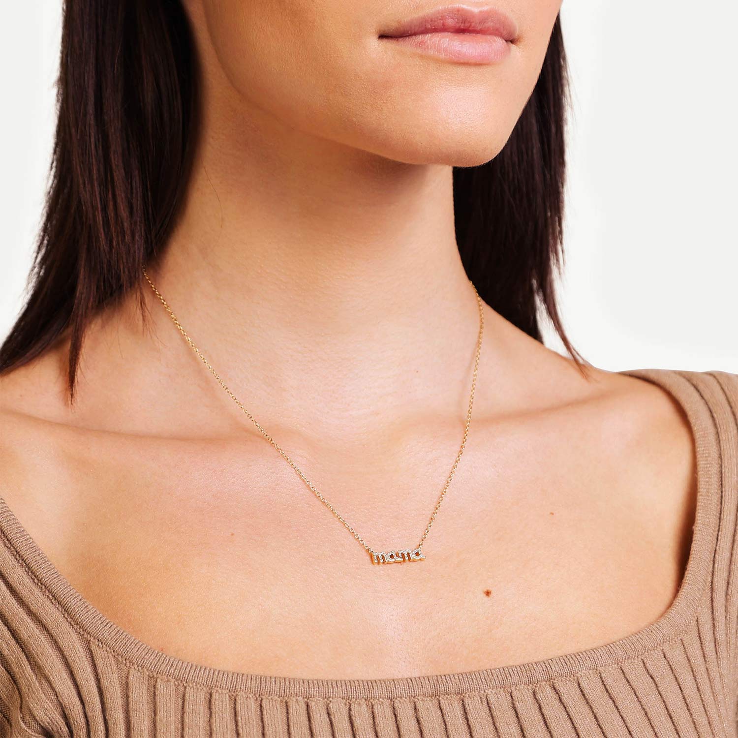The Elsa necklace is the perfect gift for any mom, combining style, love, and plenty of sparkle. This trendy necklace spells out "mama" in 14K gold dipped over sterling silver 925, making it a sentimental piece for all moms. Adorning the text are cubic zirconia gems, which add personality and shine to this necklace. Gift this to any mom in your life, or treat yourself to showcase your love for your family.