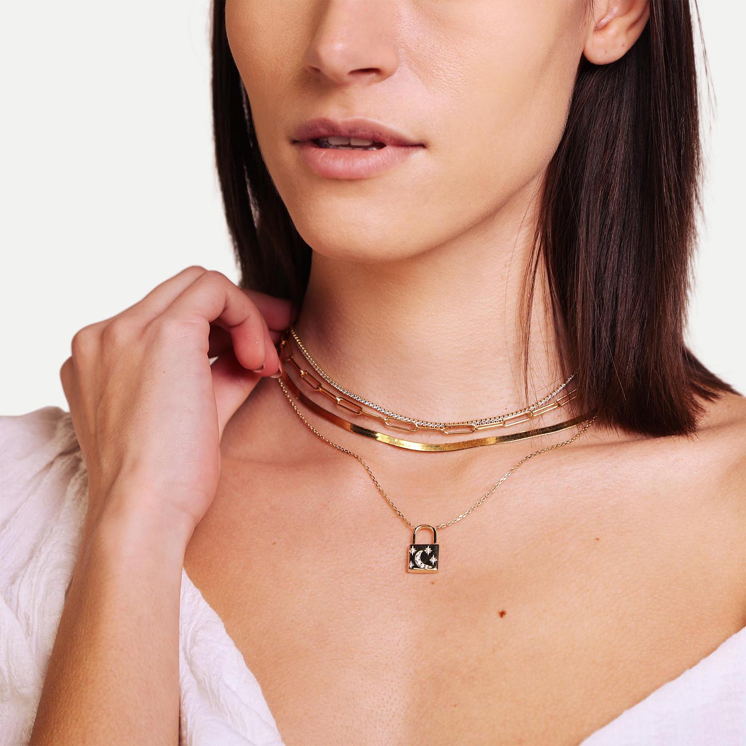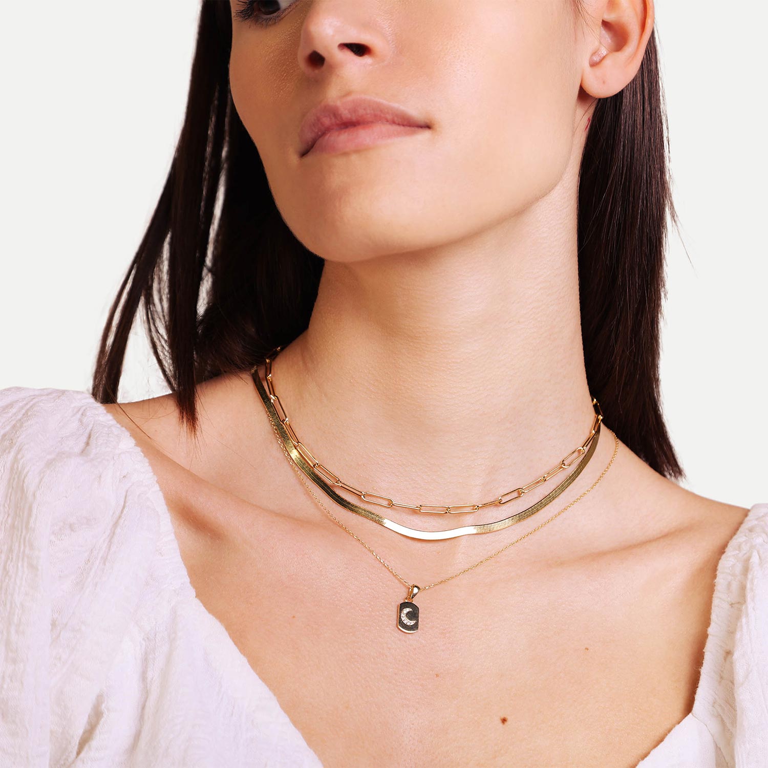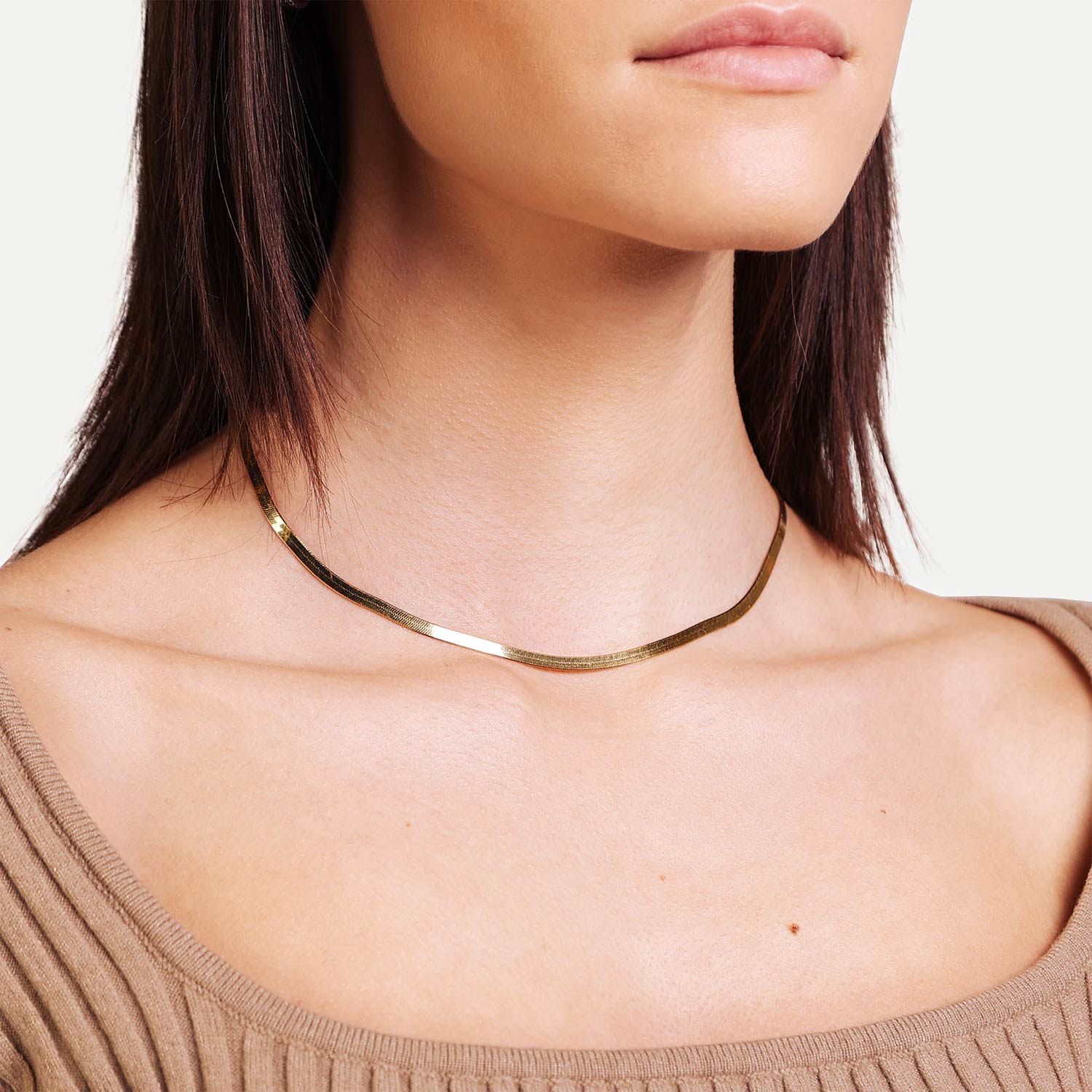The Elena gold necklace is all about simplicity and class. This 14K gold over sterling silver 925 piece comes in a herringbone chain that you'll love for its sophisticated look. This piece is great for layering with another necklace, or you can wear it on its own for a classy and feminine look.