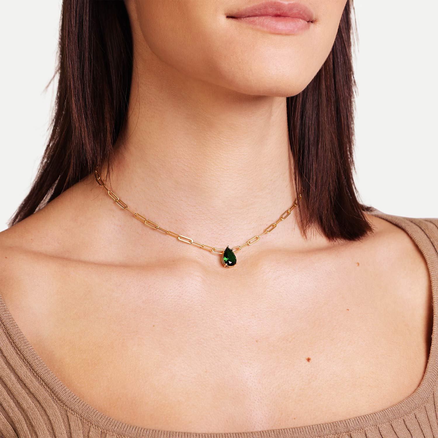 The Gia necklace is statement piece reminiscent of 1920s glamour, complete with a stunning green emeral quartz stone that will add color and vibrancy to any look. This necklace also has a 14K gold dipped over sterling silver 925 paperclip chain, which adds even more personality to this piece. You'll never tire of getting compliments on this gorgeous necklace.